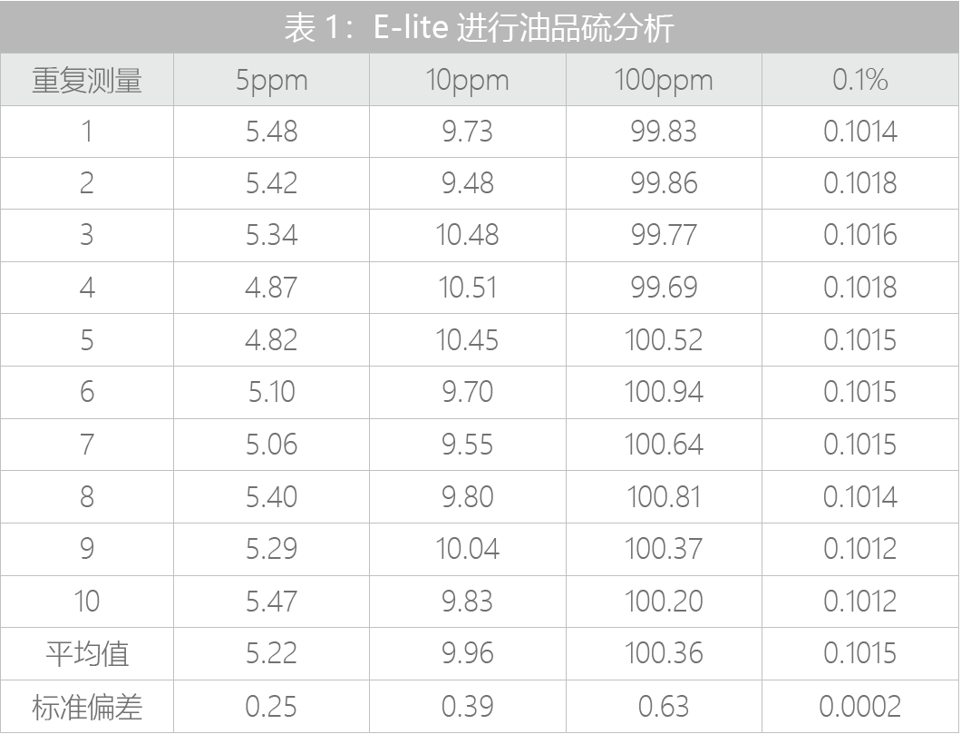 表 1 中(zhōng)的數據表示E-lite 在分(fēn)析的10 個單獨的原油試樣。